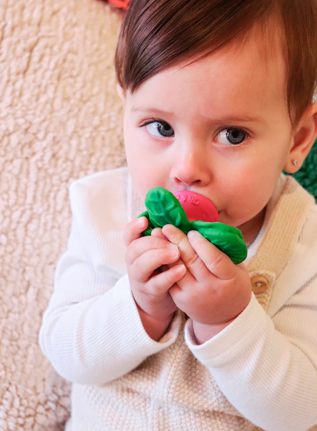 Ce jouet de dentition en forme de légume initie les tout-petits à un mode de vie sain.