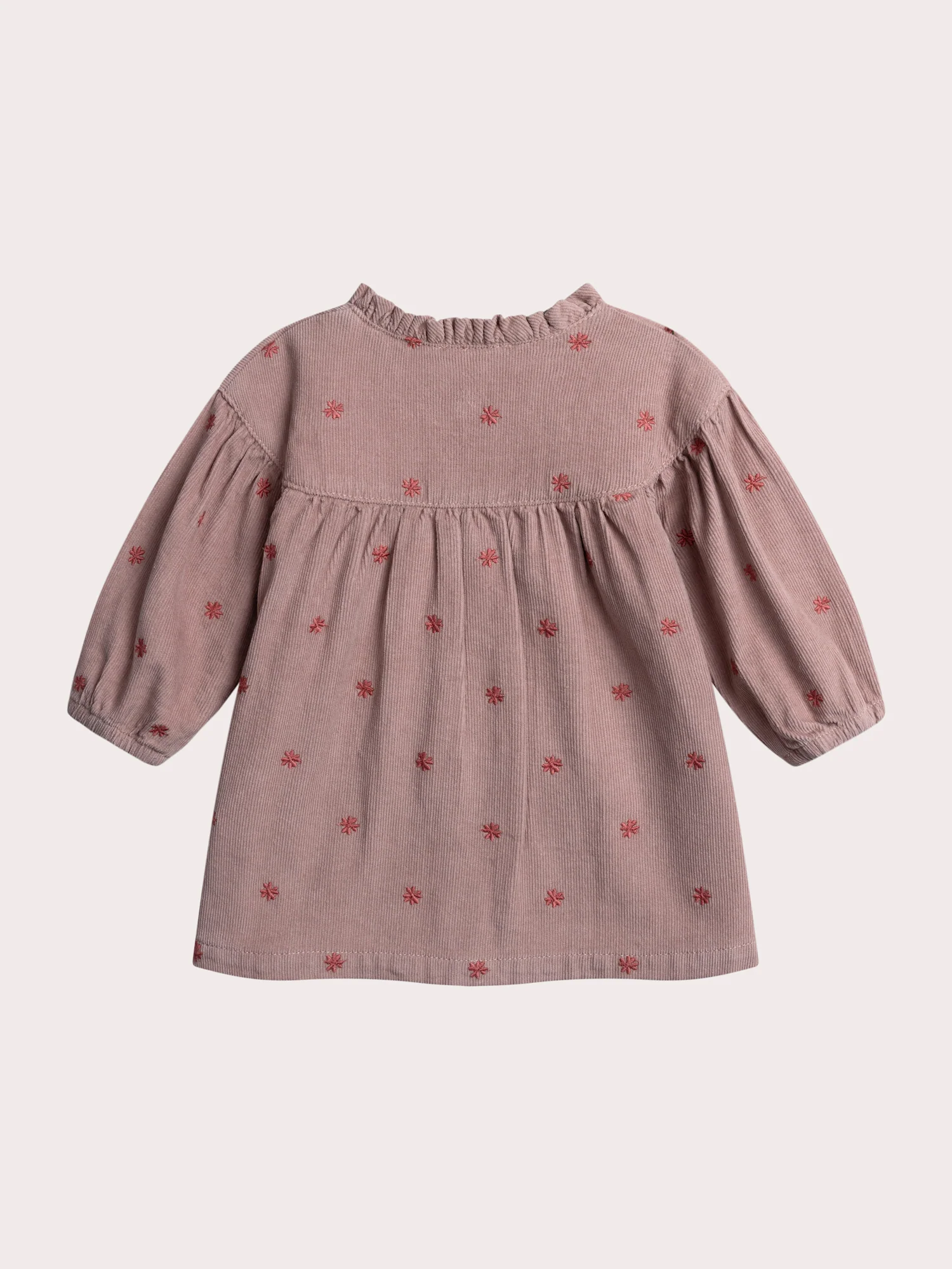 Cette robe en velours côtelé est idéale pour les bébés filles lors des journées fraîches. Elle offre douceur et chaleur avec une ouverture boutonnée pratique au milieu devant. La broderie fleurs ajoute une touche délicate et raffinée à la tenue.