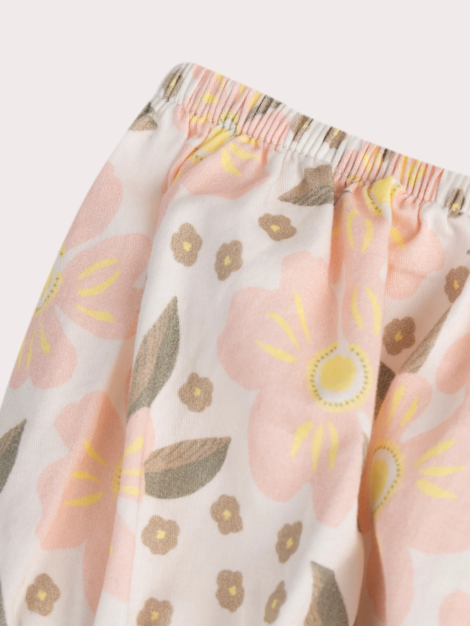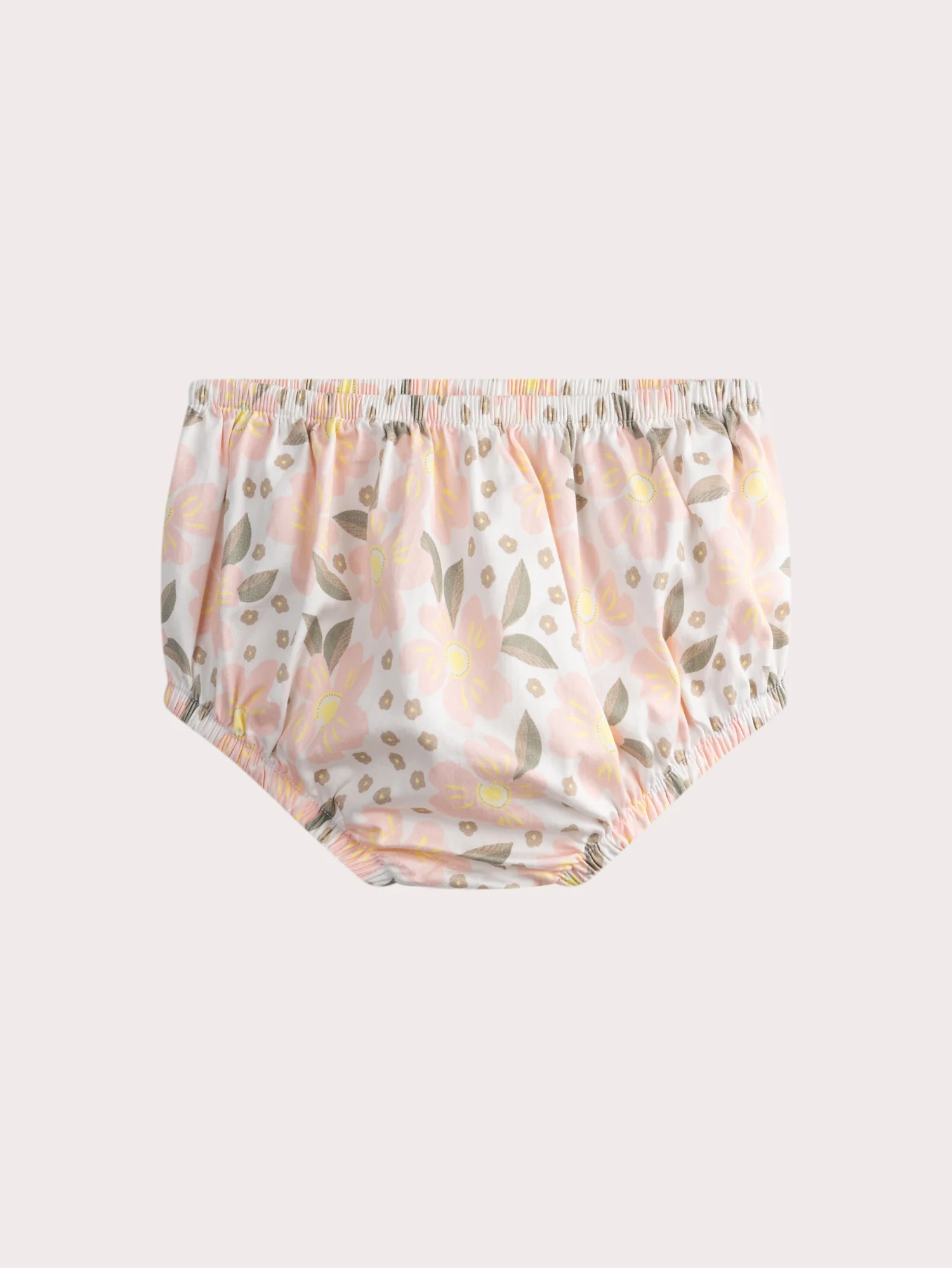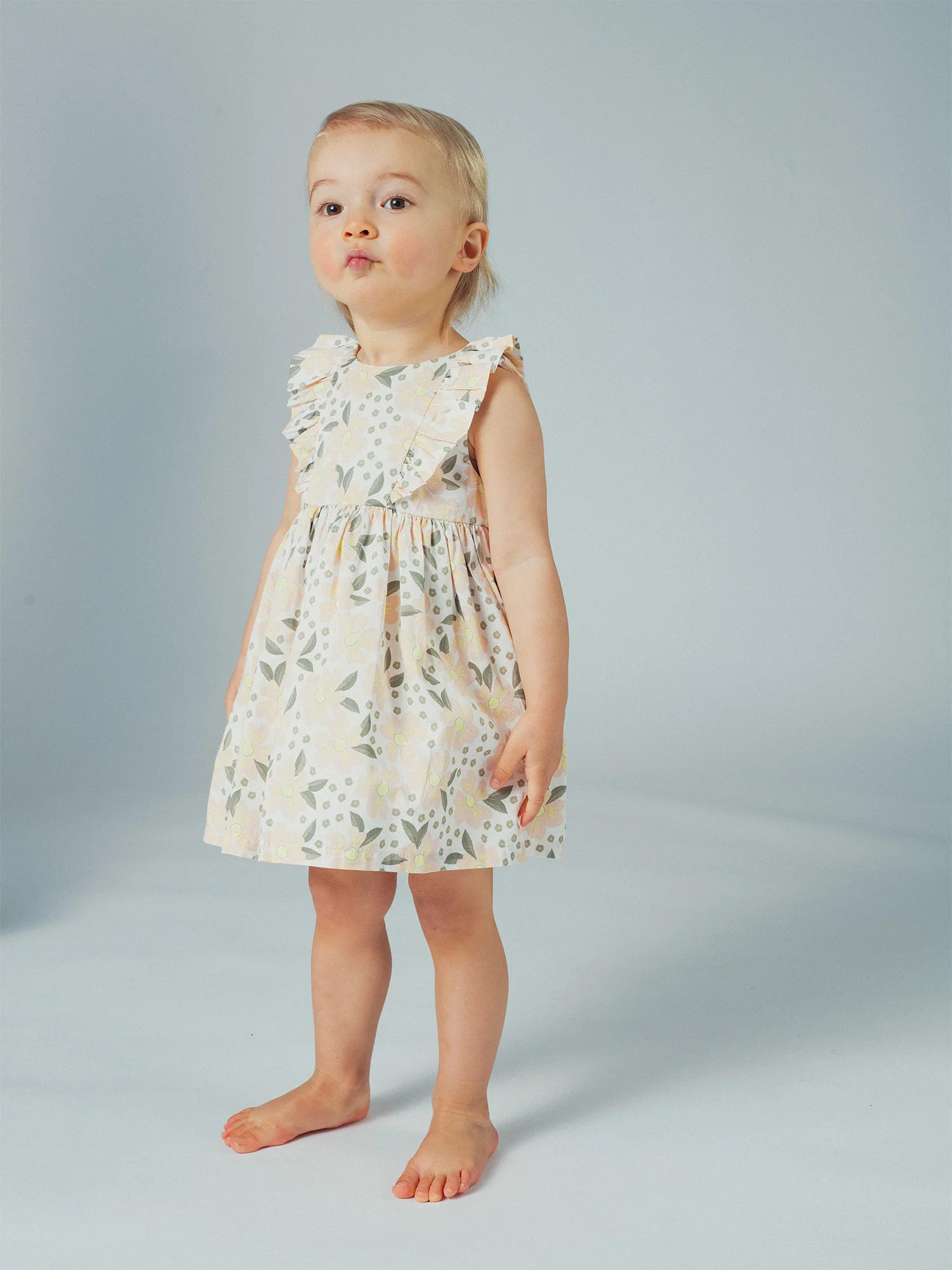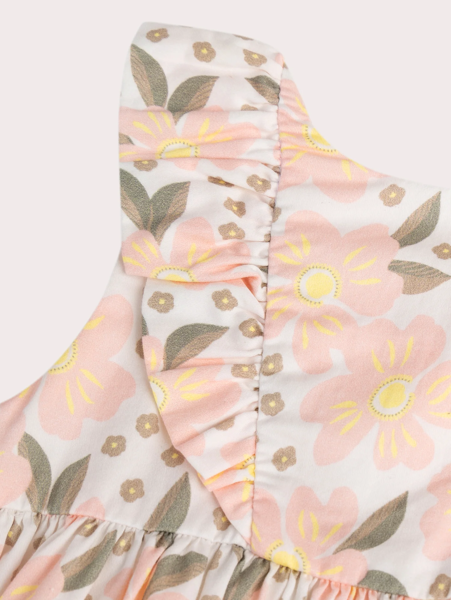 Cette robe fleurie pour bébé fille en satin de coton offre un joli imprimé de fleurs colorées, apportant douceur et élégance. Elle est accompagnée d’un bloomer assorti pour un ensemble harmonieux. La taille est ajustable grâce à un ruban noué au dos, et la fermeture invisible assure une finition soignée.