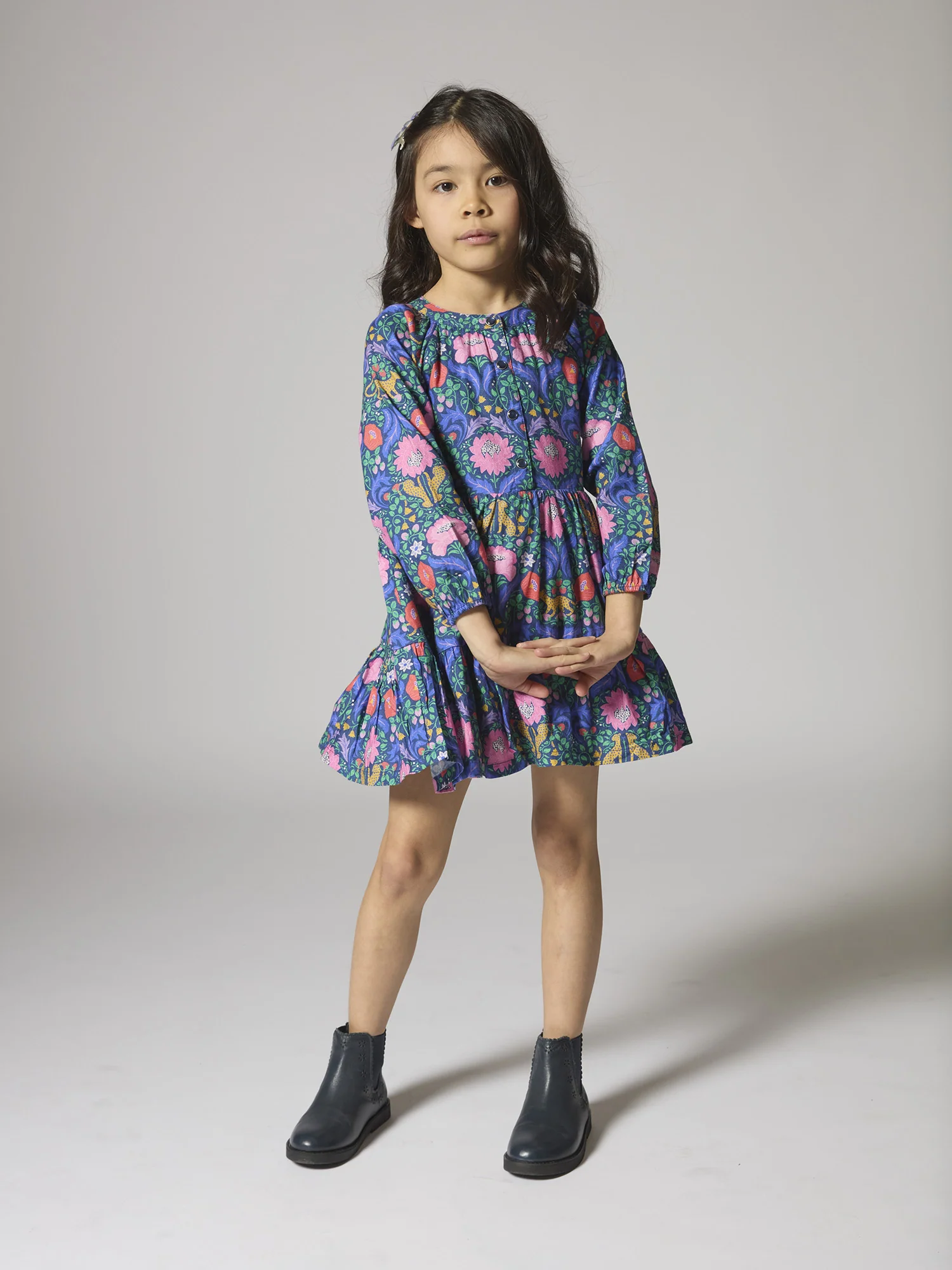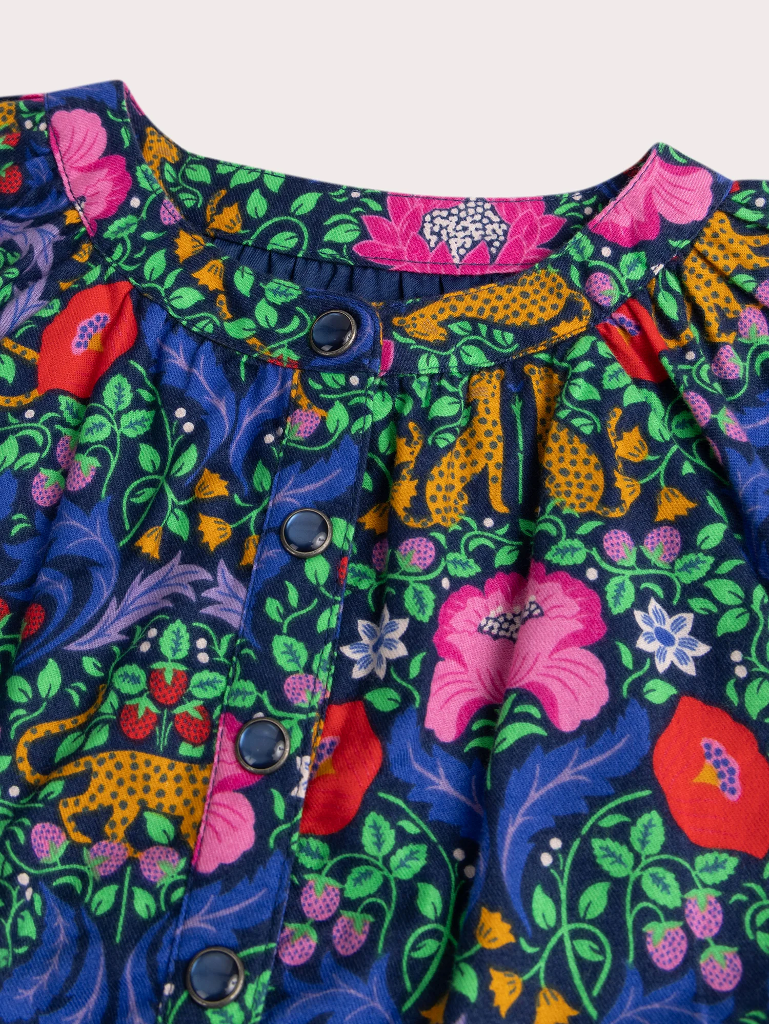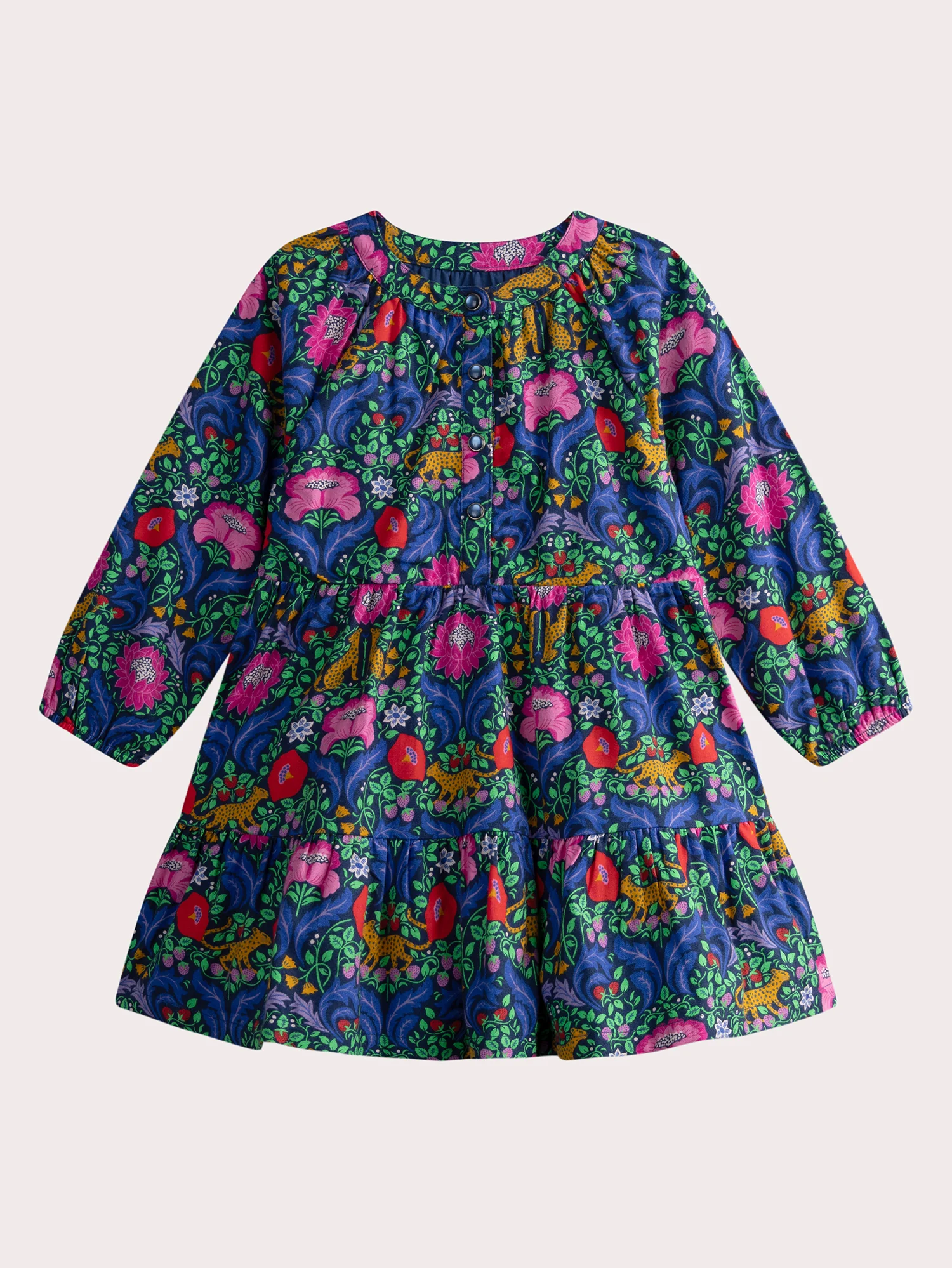 Parfaite pour les petites aventurieres, cette robe en toile légere est idéale pour les journées ensoleillées. Son imprimé psychédélique coloré ajoute une touche de dynamisme et de fantaisie. L’ouverture avant boutonnée allie praticité et charme rétro.
