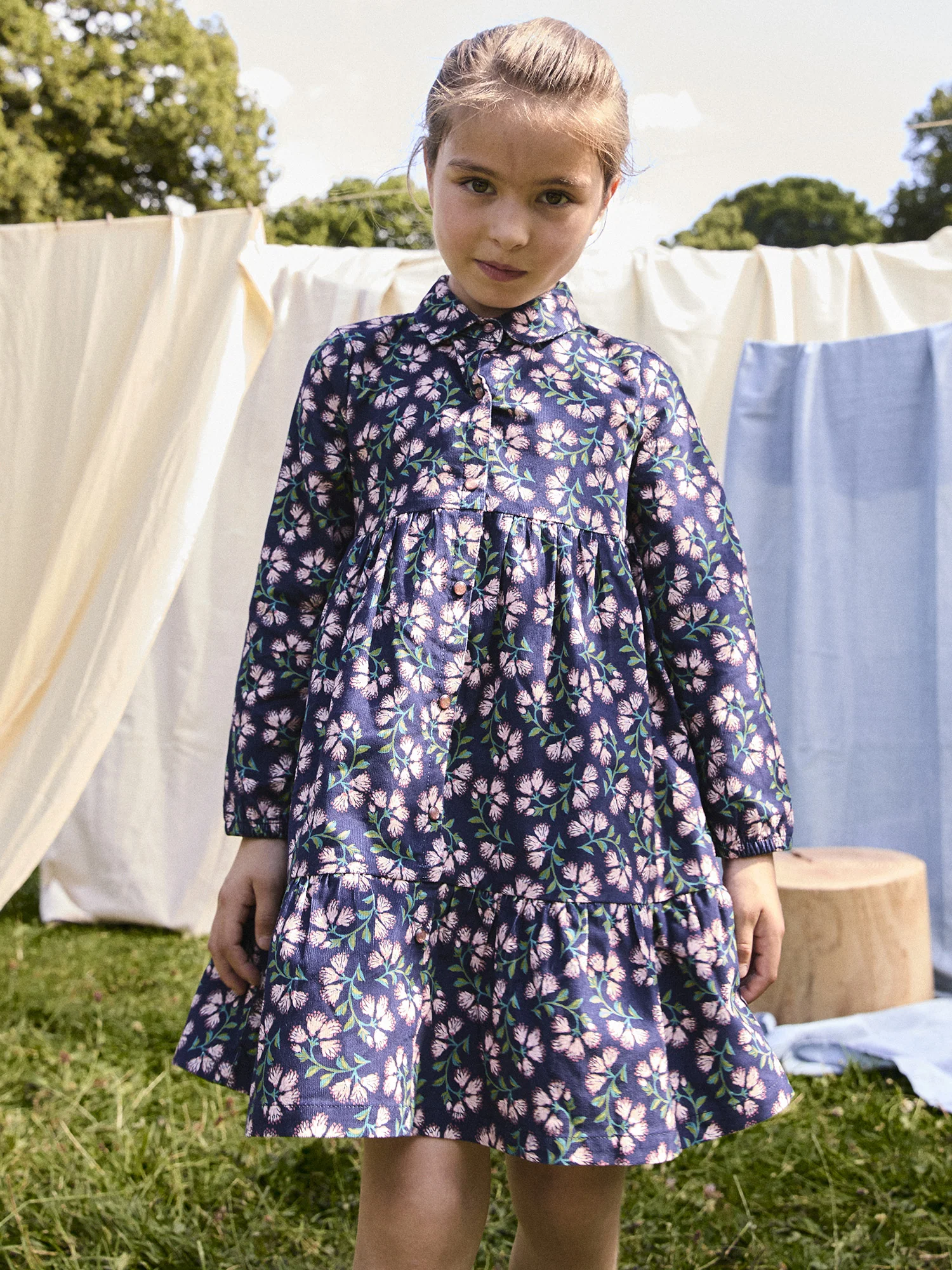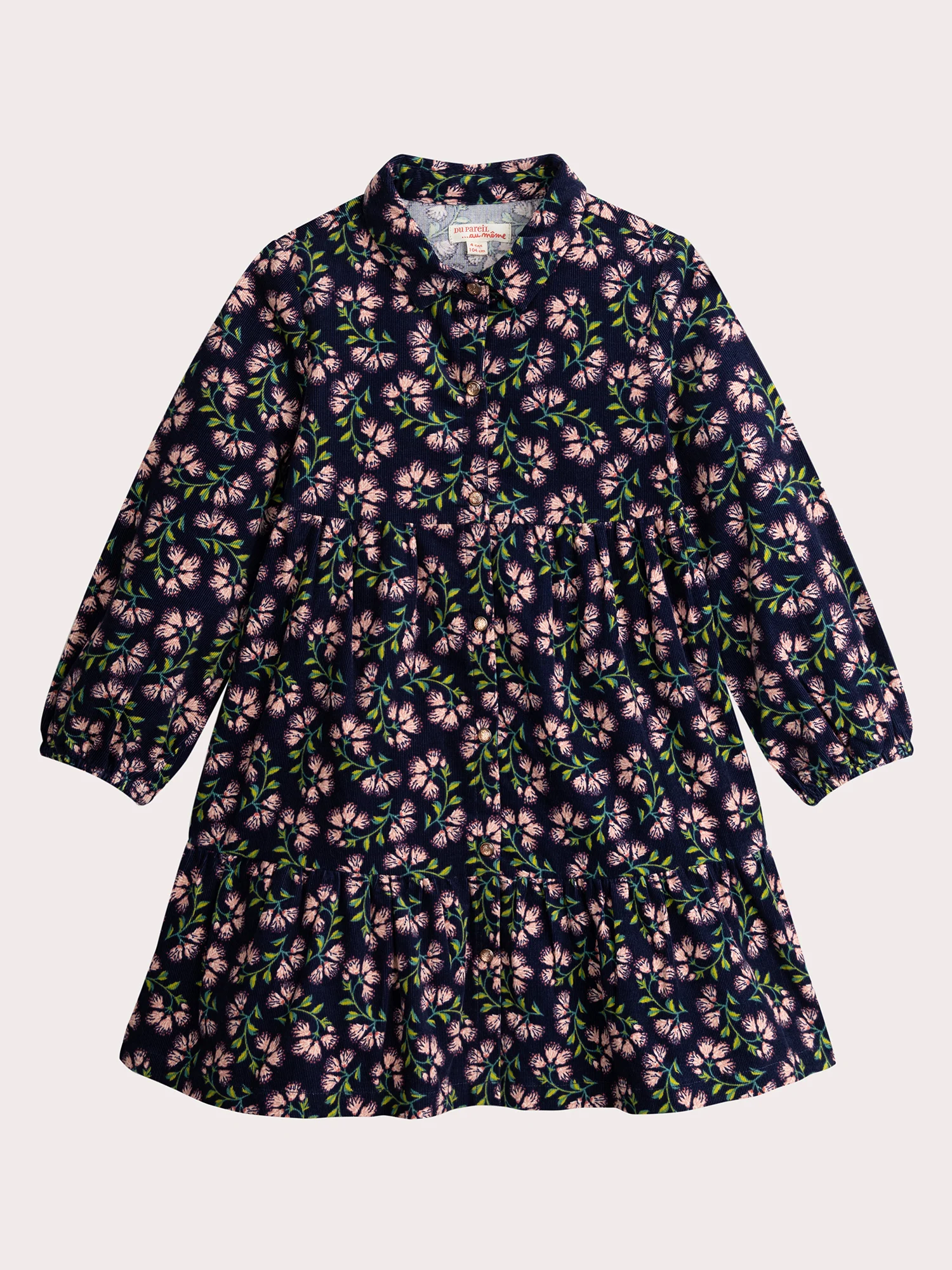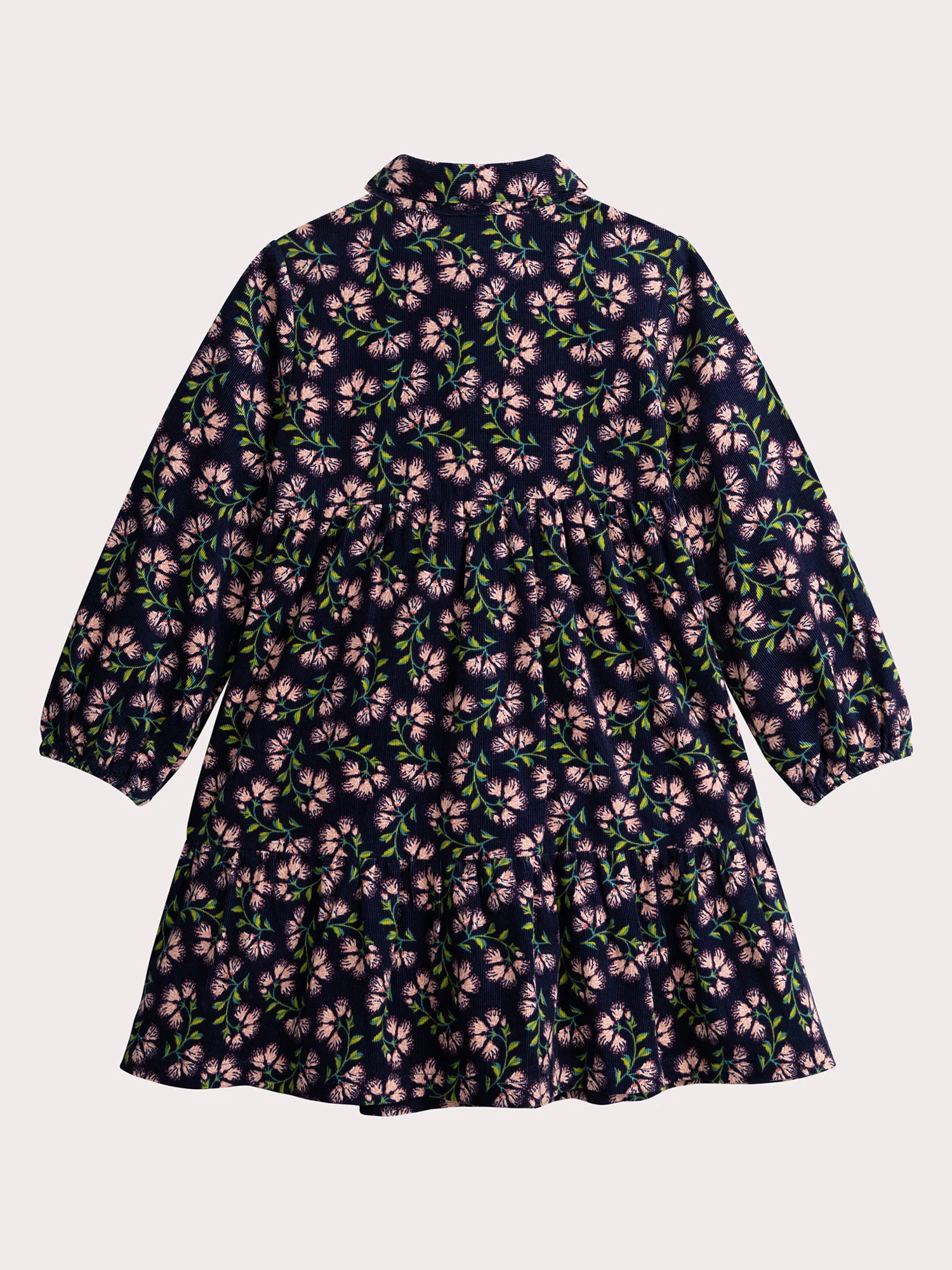 Robe marine en velour cotelé imprimé fleuri pour fille