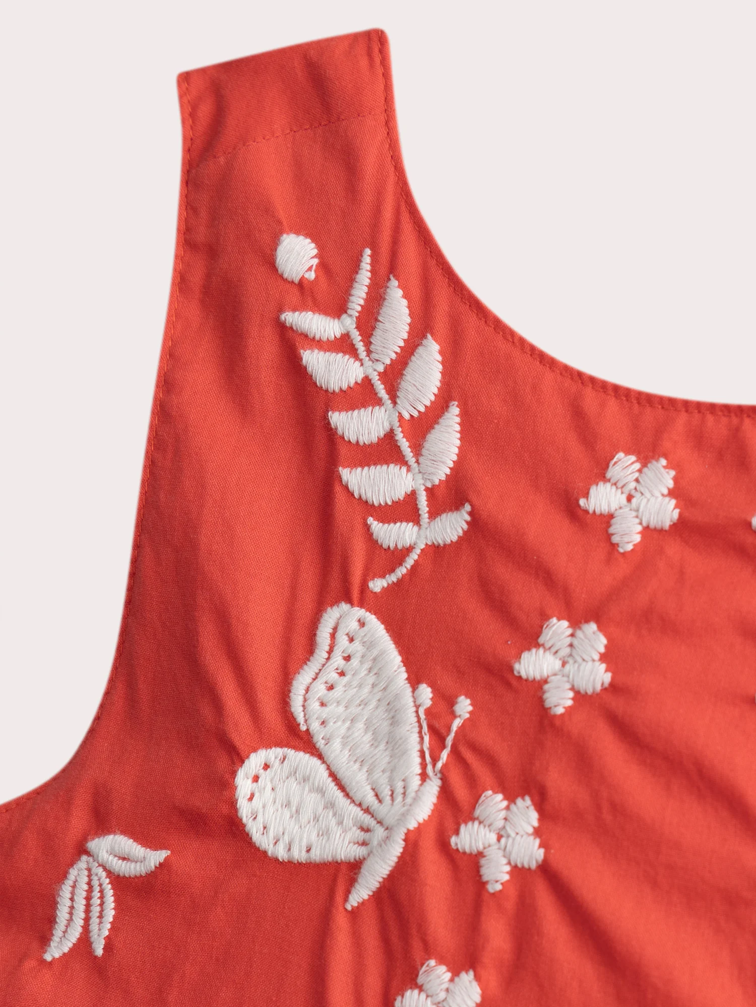 Pour les petites filles pleines de charme, cette robe orangée brodée est parfaite pour les journées ensoleillées. Confectionnée en voile de coton léger, elle offre confort et fraîcheur tout au long de la journée. Son dos croisé et ses broderies délicates ajoutent une touche raffinée et unique à ce modele coloré.