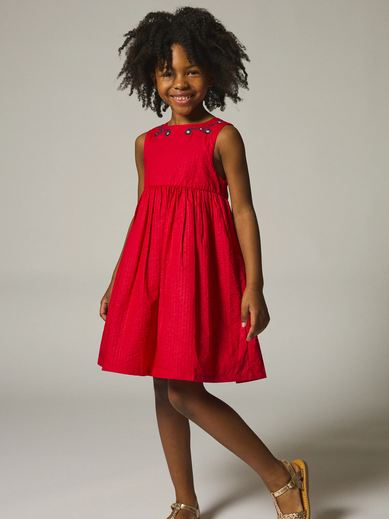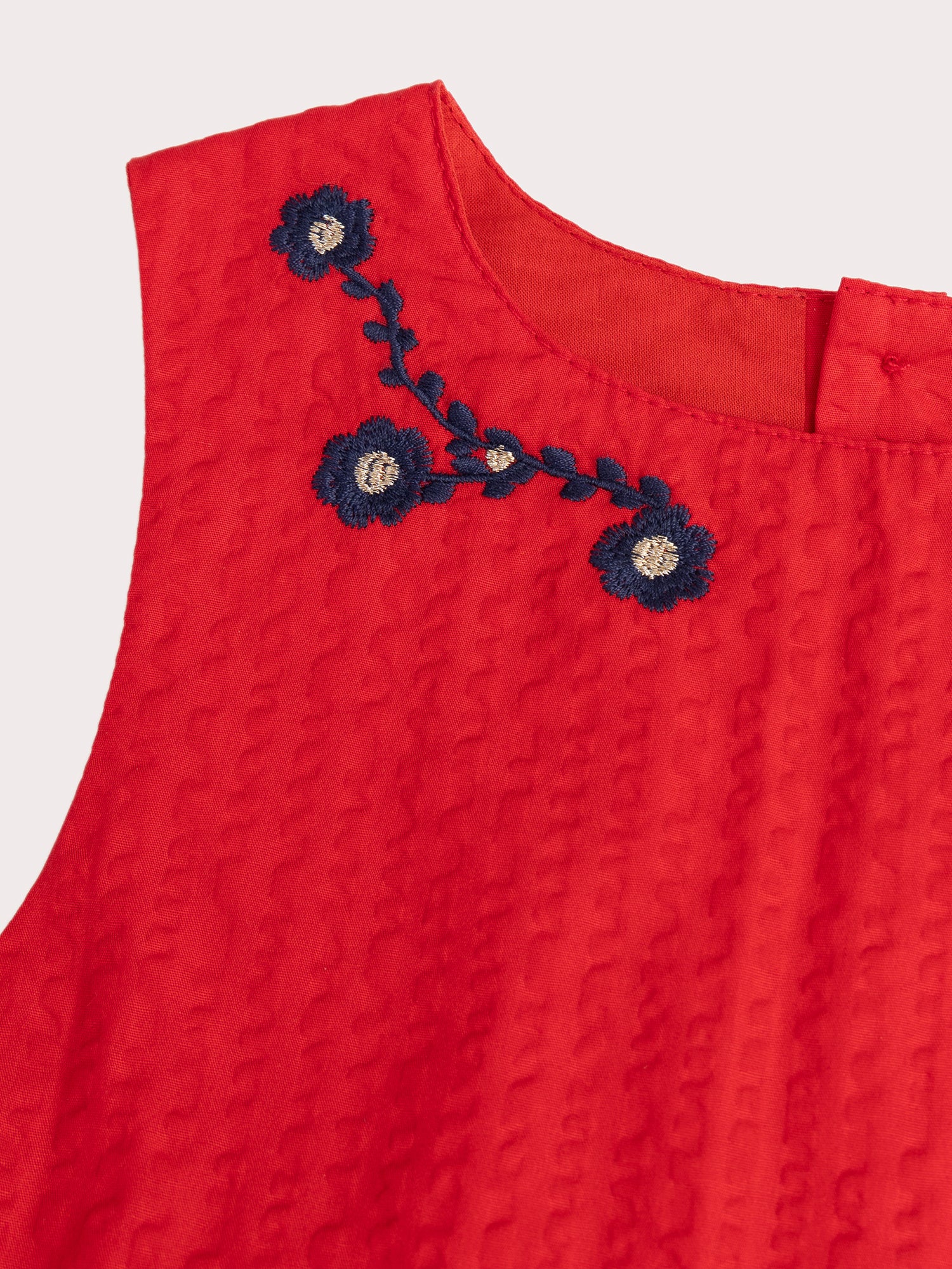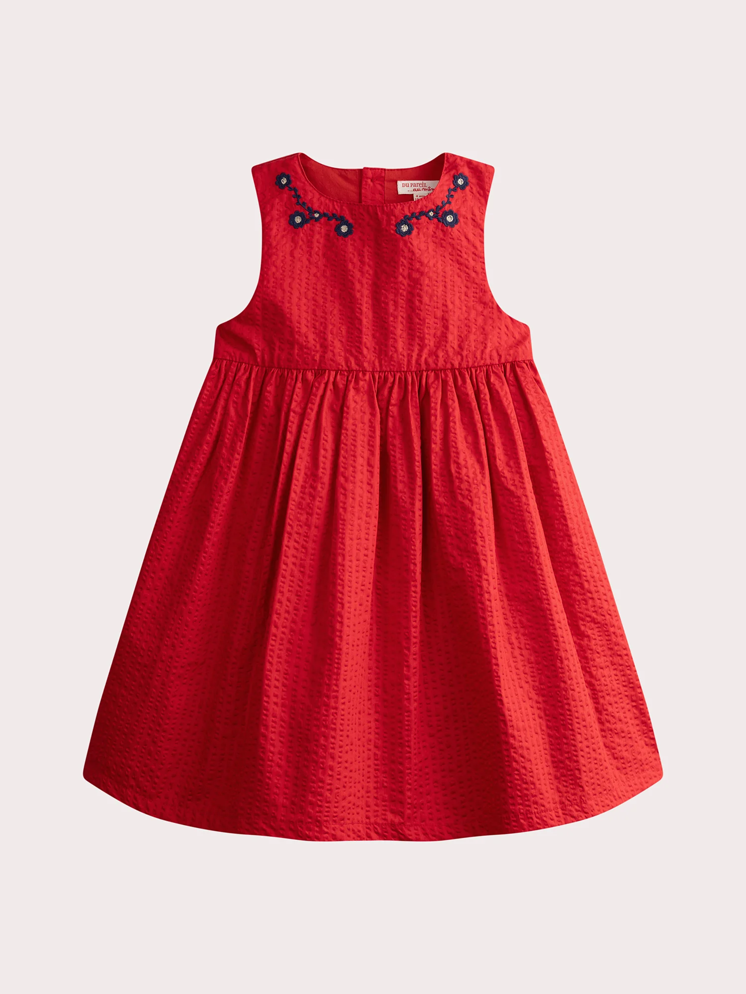 Pour les petites exploratrices pleines de douceur, cette robe rouge gaufrée est idéale pour les journées d’automne et d’hiver. Confectionnée dans un tissu texturé et doublée pour plus de confort, elle allie style et praticité avec son ouverture arriere par boutons. Ses broderies florales bleues et dorées apportent une touche d’élégance et de poésie.