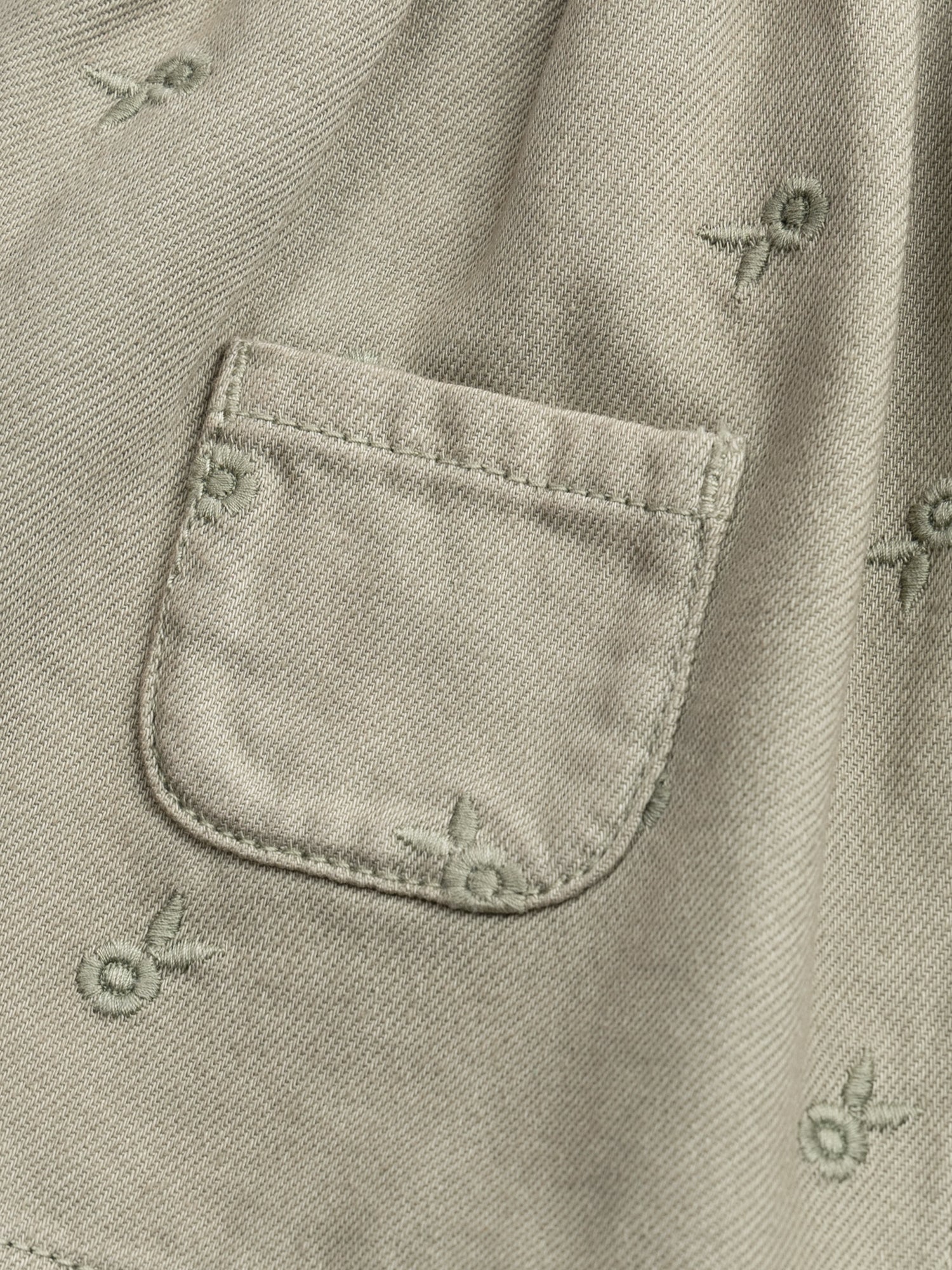 Cette robe salopette en denim coloré allie douceur, confort et charme pour un look estival. Son tissu souple accompagne facilement les mouvements de votre bébé. Les bretelles volantées et les fronces sous l’empiècement apportent une touche délicate, tandis que la broderie florale discrète donne au denim un style tendre et original. Pratique, l’ouverture sur le devant avec six boutons effet bois facilite l’habillage. Les deux poches plaquées complètent l’ensemble avec une note fonctionnelle et stylée.
