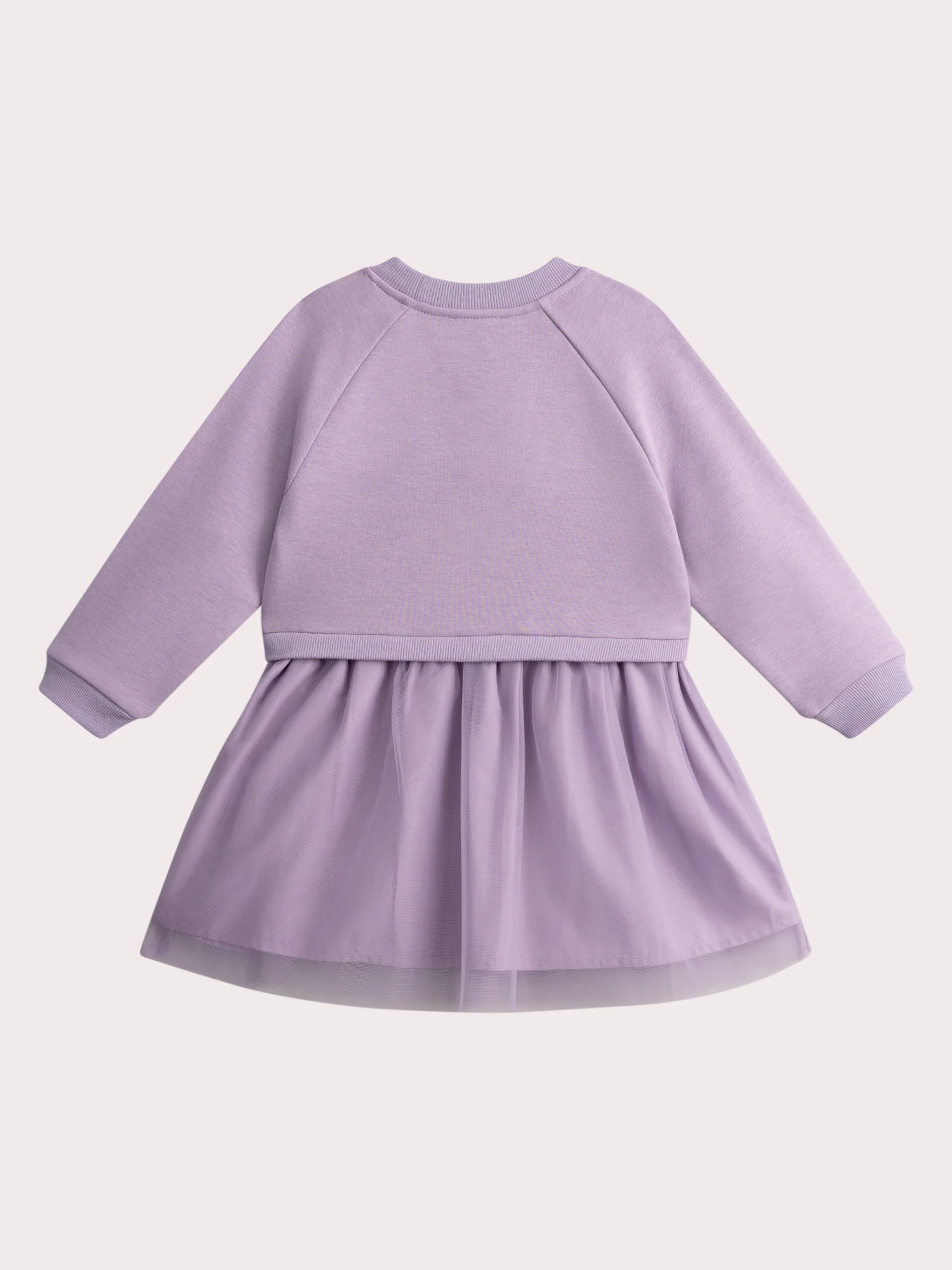 Idéale pour les petites coquettes, cette robe sweat avec tulle est parfaite pour les journées fraîches. En polyester doux, elle offre chaleur et confort avec ses manches longues. L’animation fleurie à sequins irisés et le jupon en tulle violet apportent une touche festive et élégante.