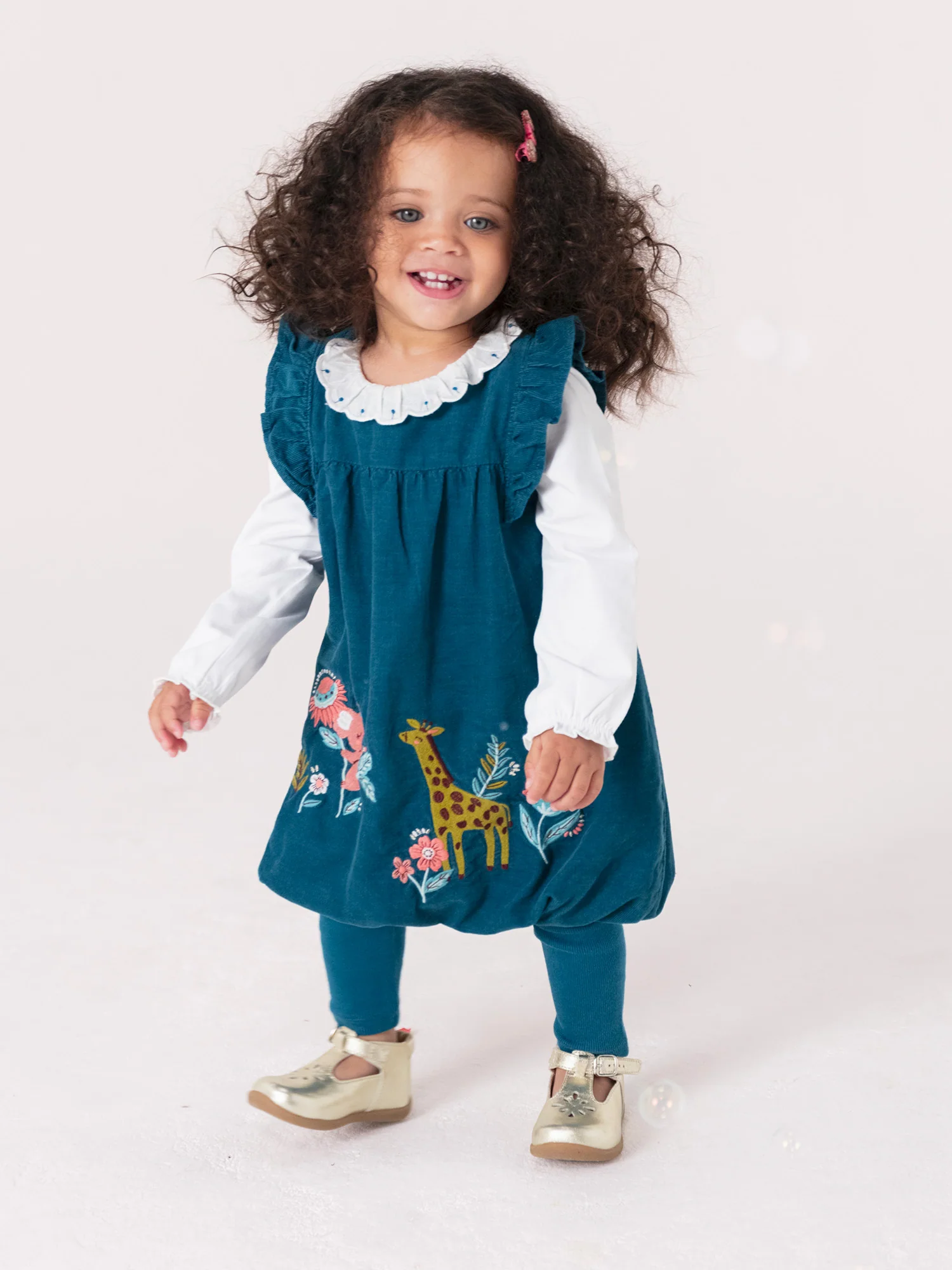 Pour les petites étoiles pleines de charme, cette robe turquoise foncé en velours de coton est un choix parfait pour les occasions spéciales. Avec ses manches volantées, elle ajoute une touche de douceur et d’élégance à votre bébé fille. Dotée d’une animation animale, elle apporte une note ludique à son look. L’ouverture à boutons au dos facilite l’habillage. Cette robe est idéale pour lui offrir un style unique et adorable lors des moments précieux.