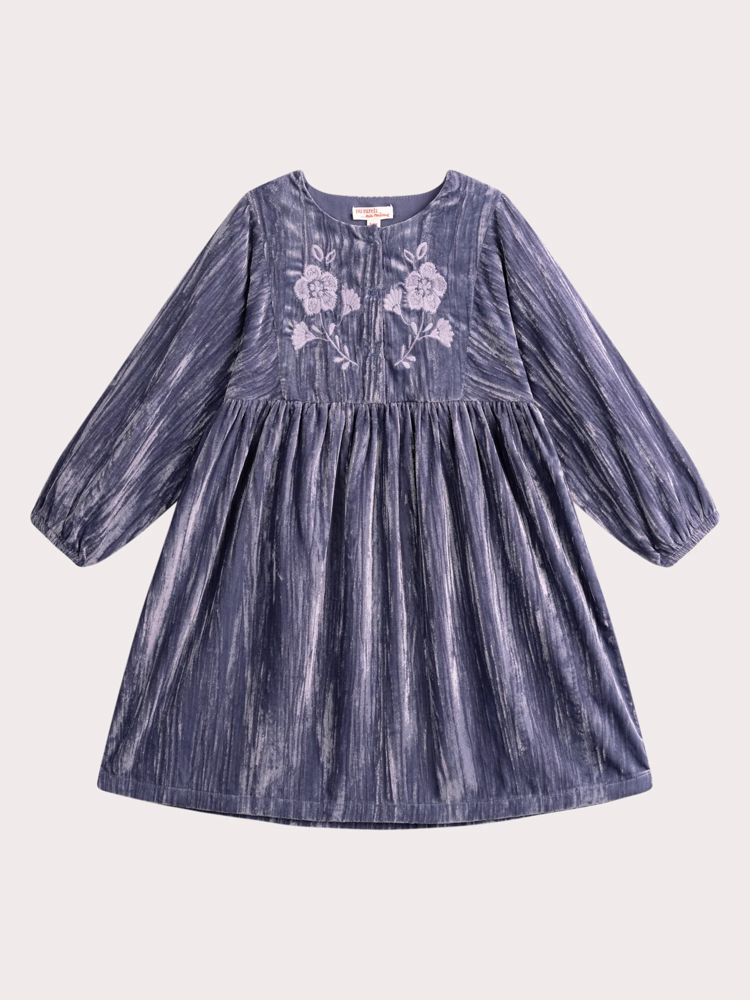 Robe violette en velours avec broderies pour fille