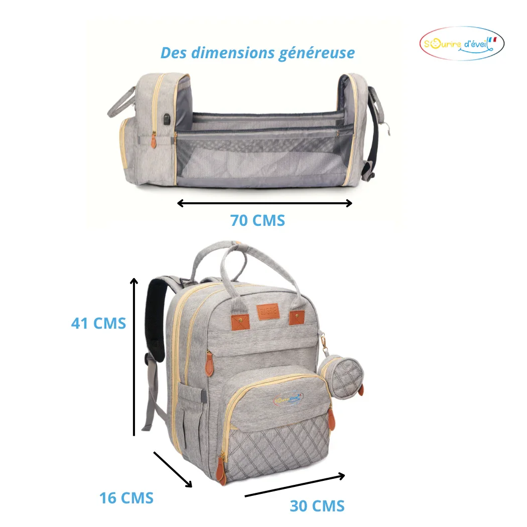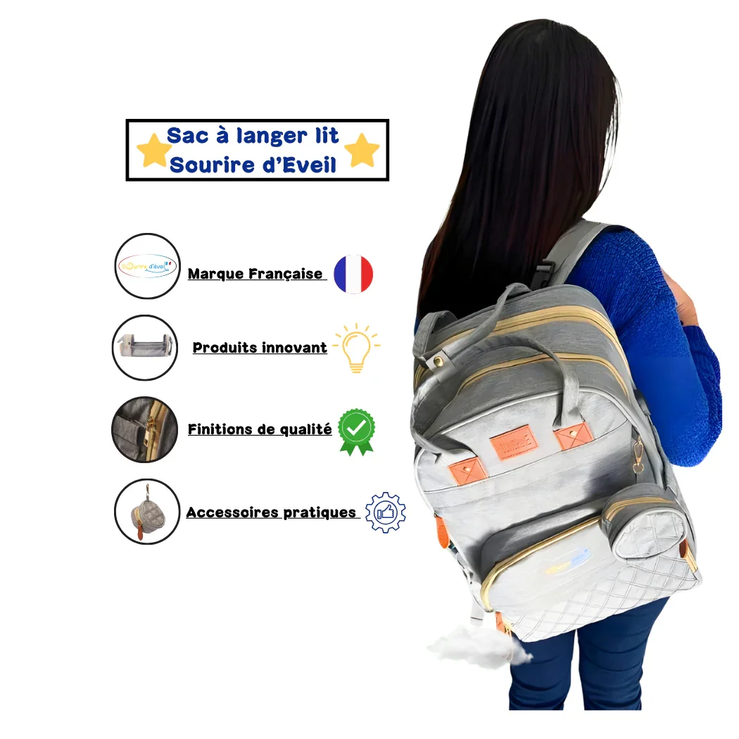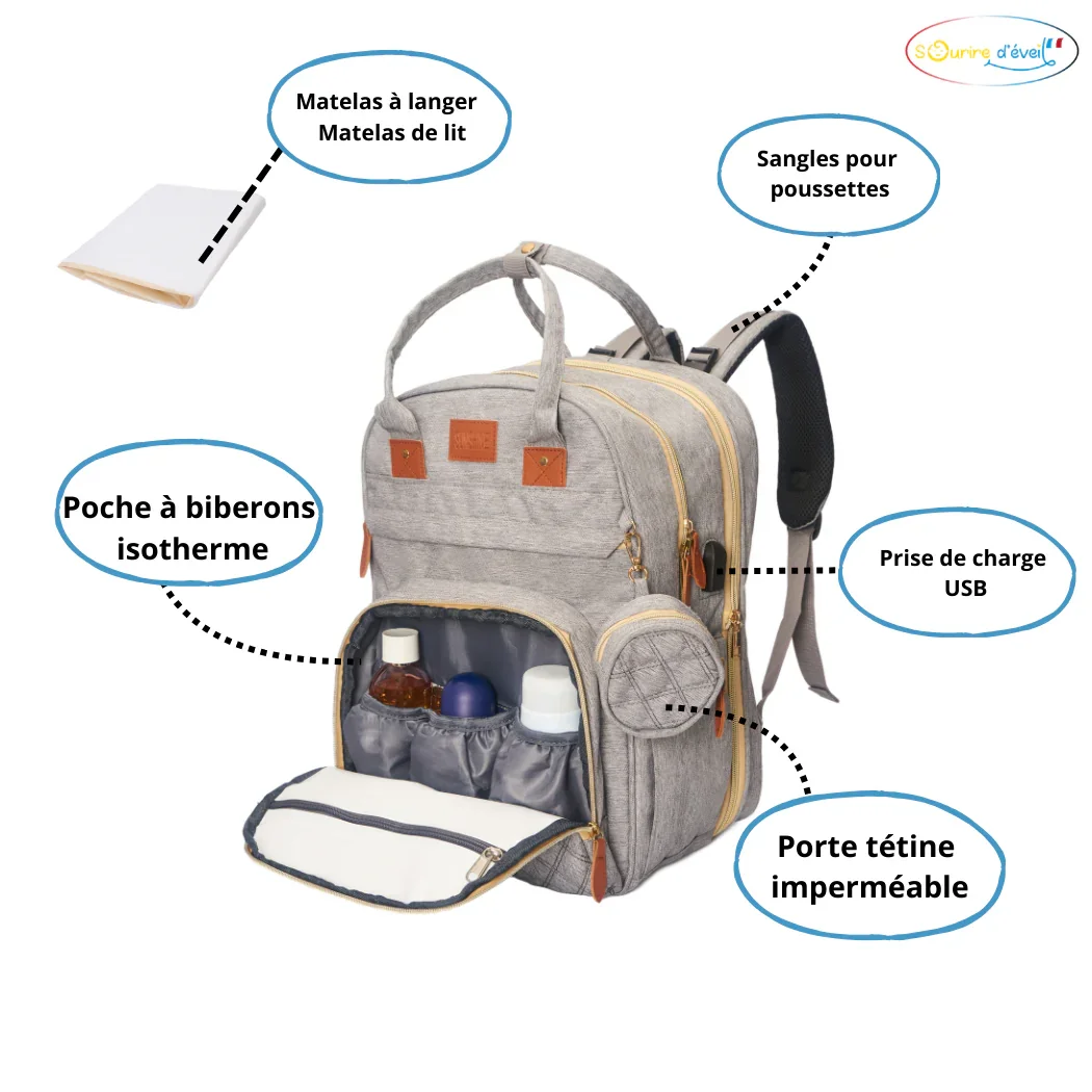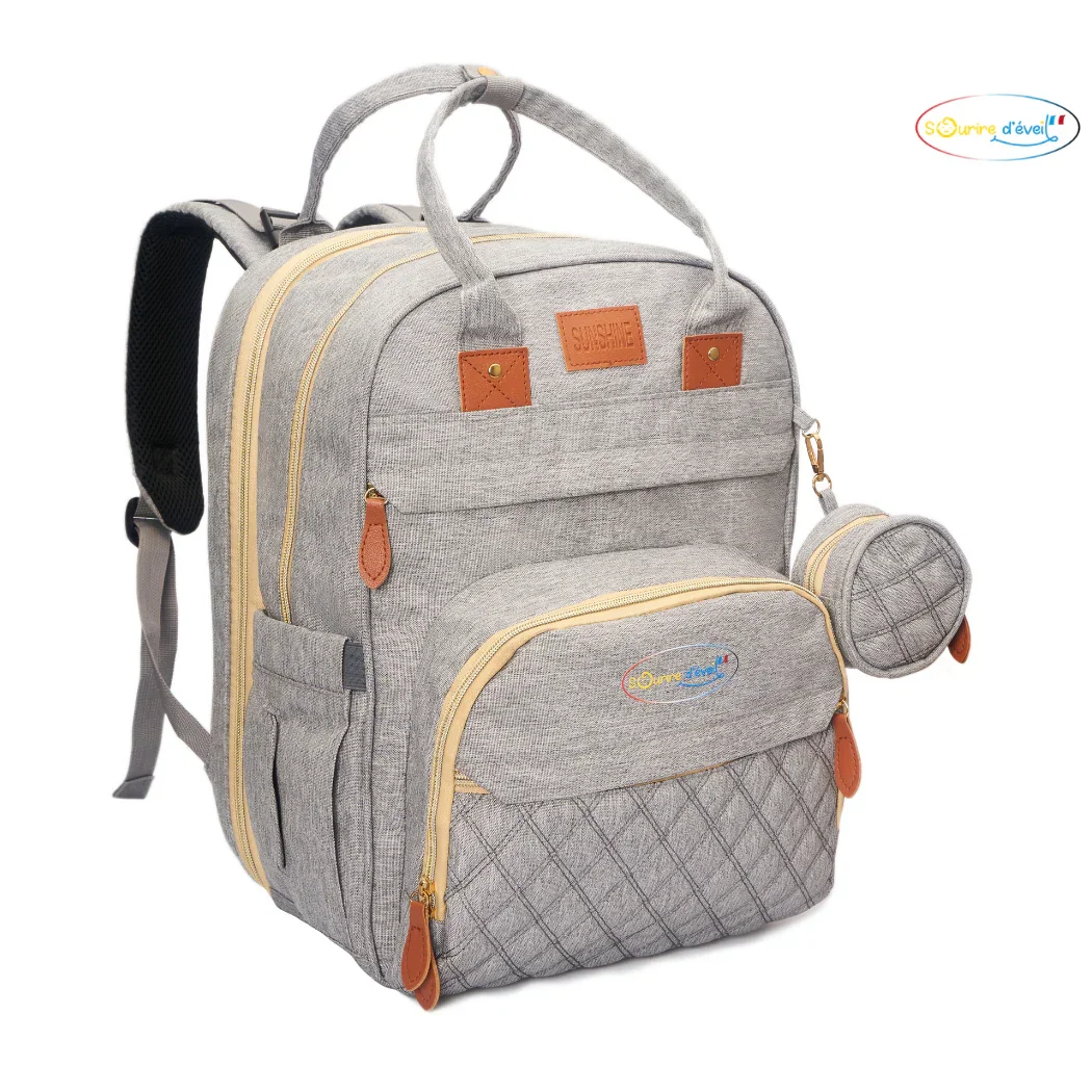 Sac à dos à langer Sourire d’Éveil — Tout-en-un, ingénieux et pratique