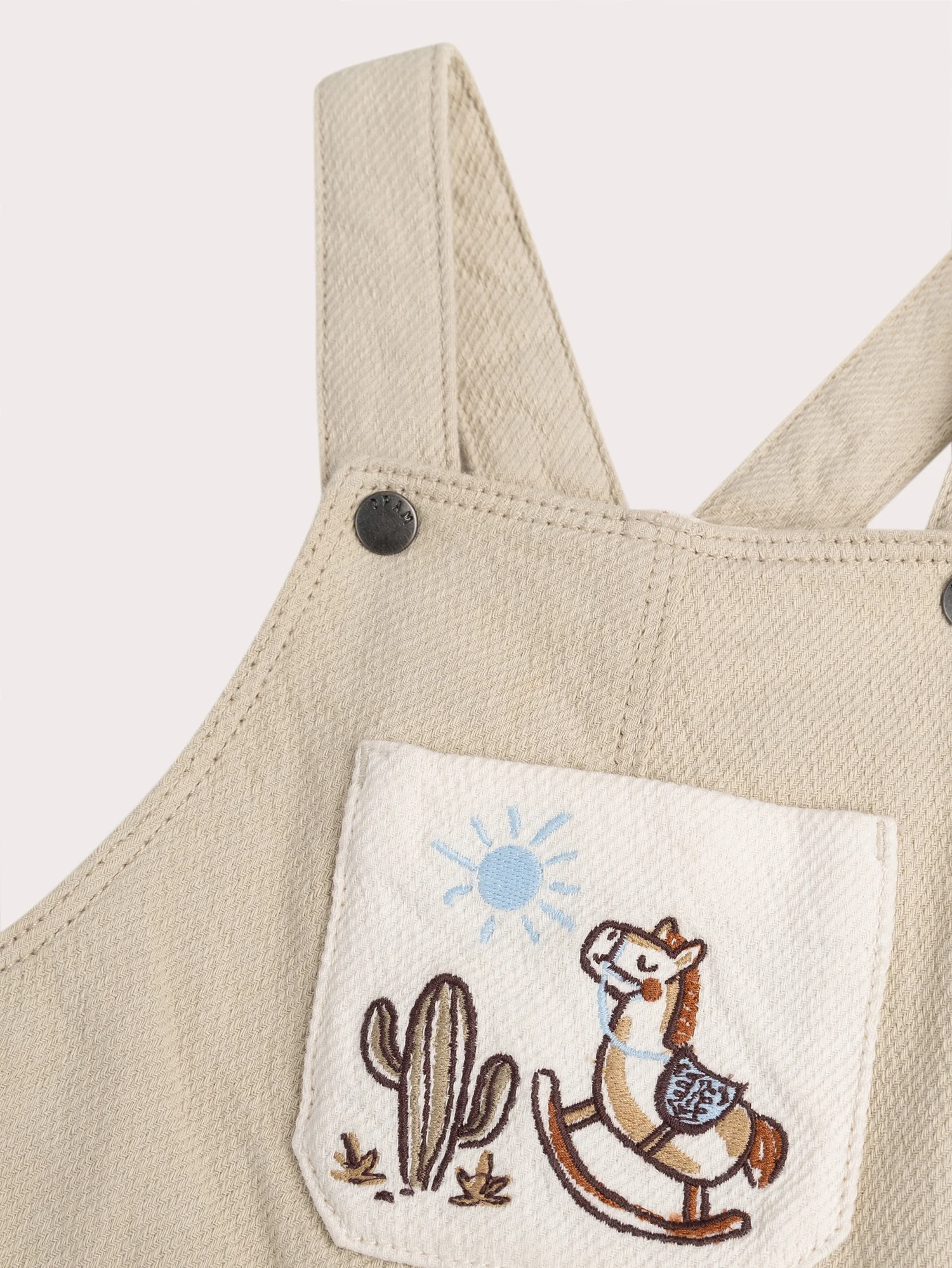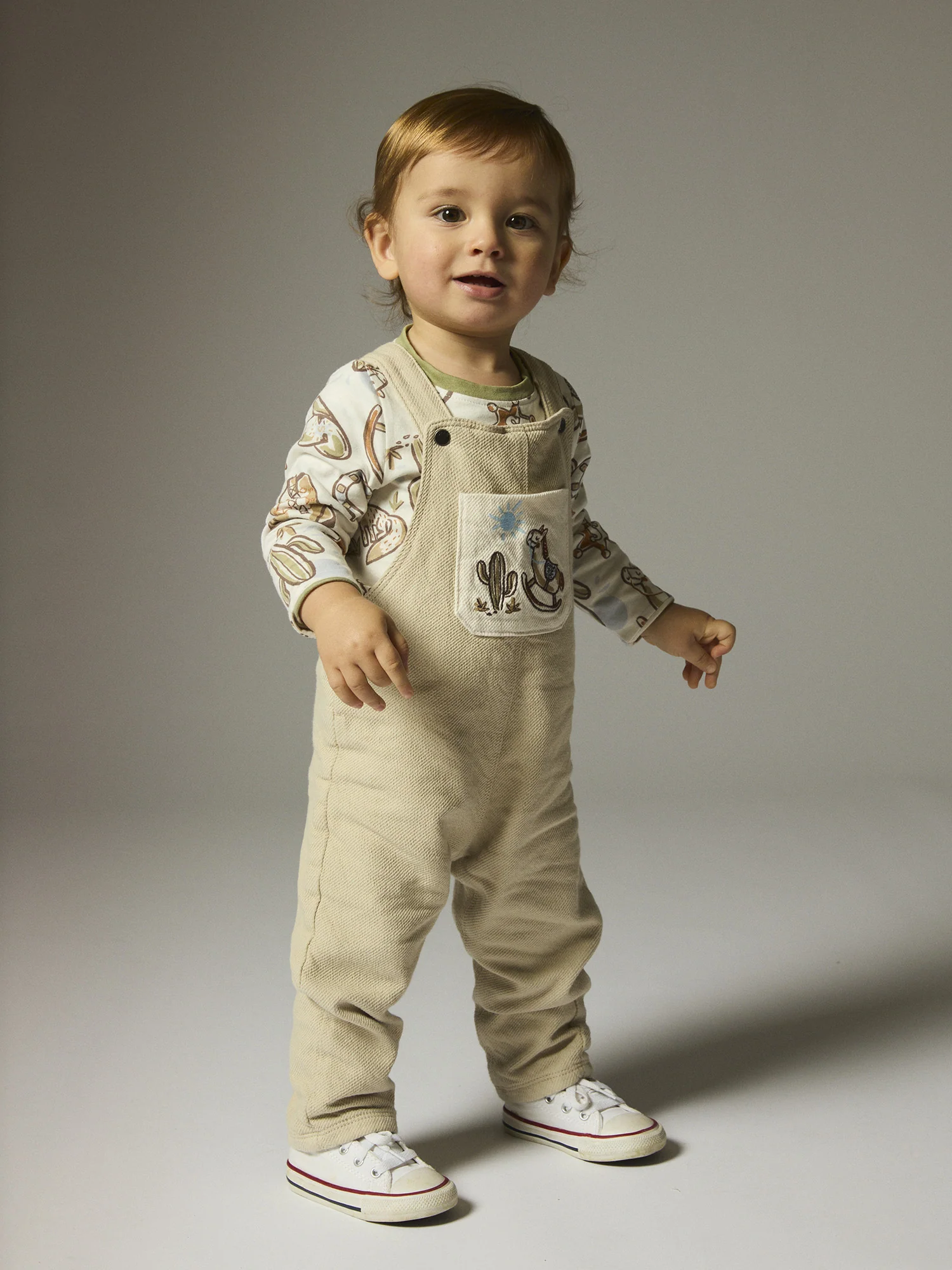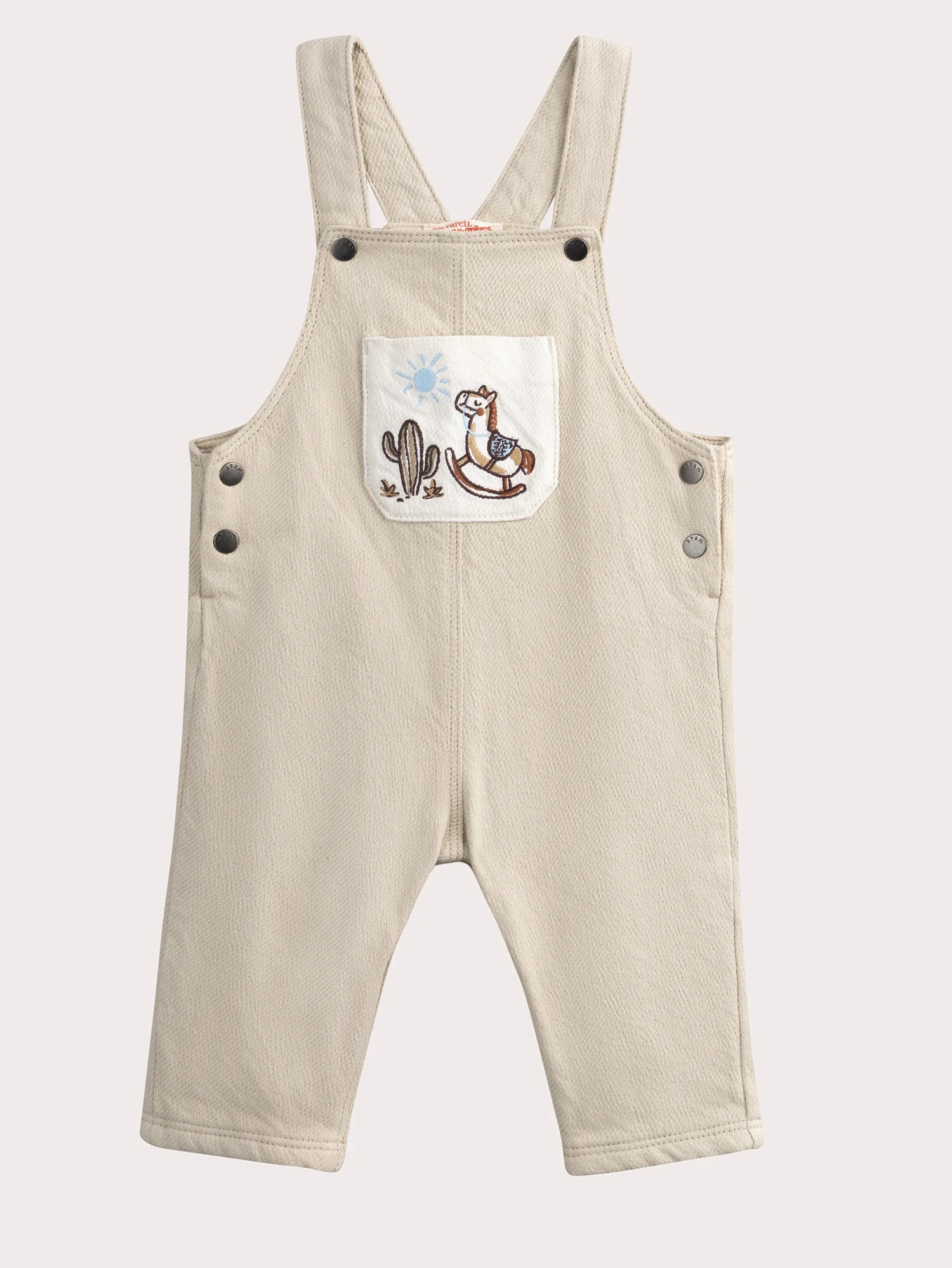 Cette salopette beige pour bébé garçon est idéale pour un look à la fois pratique et stylé. Confectionnée en twill, elle assure confort et résistance, avec des poches contrastées pour un détail moderne. Parfaite pour les aventures quotidiennes de votre petit explorateur.
