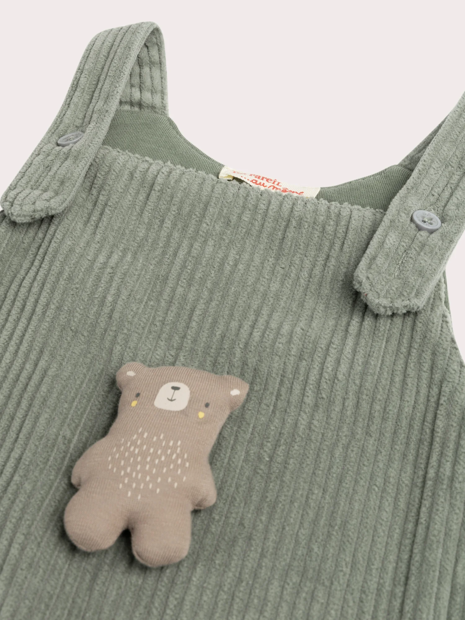 Idéale pour les petits aventuriers, cette salopette longue en velours pour bébé garçon est parfaite pour les journées fraîches. Conçue en velours de coton, elle offre confort et chaleur, avec des bretelles ajustables à bouton pour un ajustement parfait. Les ouvertures à bouton sur les côtés et à boutons-pression à l’entrejambe jusqu’à 18 mois, ainsi que le détail doudou sur le devant, ajoutent une touche pratique et ludique à ce vêtement.