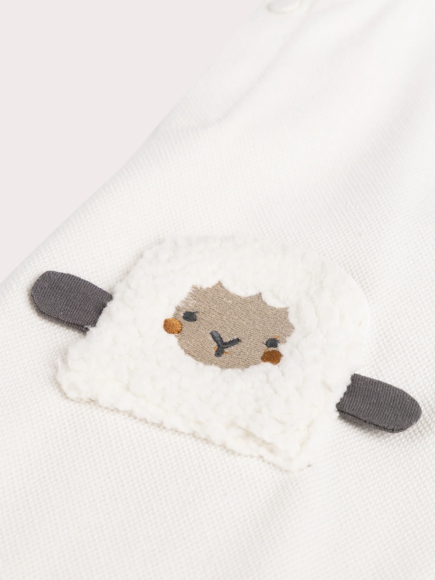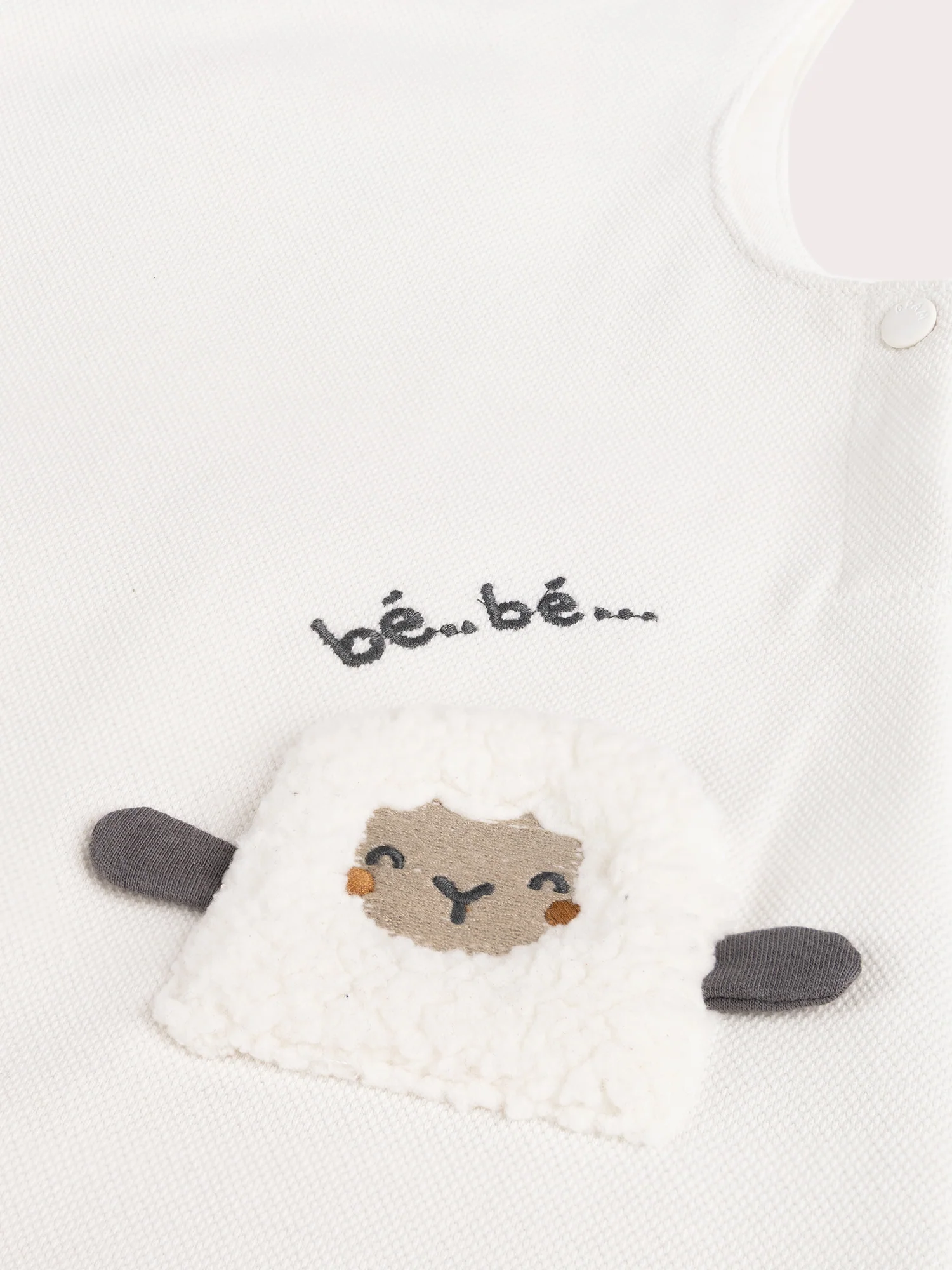Cette salopette naissance écrue animation mouton est conçue pour garder votre bébé bien au chaud tout en étant confortable. Confectionnée en piqué de coton gratté, elle est douce et isolante, avec des poches en fourrure synthétique ajoutant une touche de fantaisie. L’ouverture par boutons aux épaules et les boutons-pression invisibles à l’entrejambe facilitent l’habillage, tandis que les chevilles élastiquées assurent un ajustement parfait.