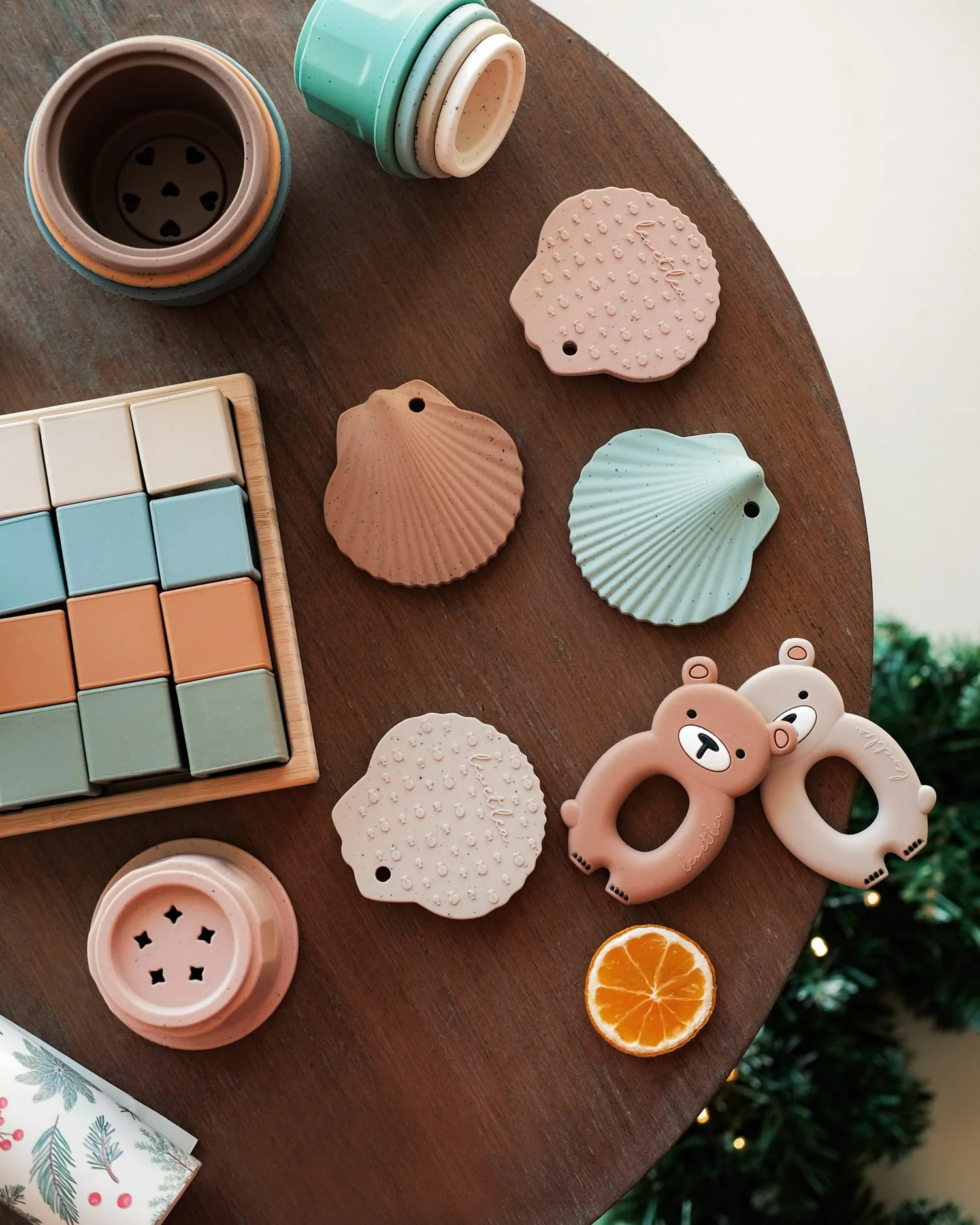 Tadam! Here is the beautiful, the essential ‘leo and lea’ shell teether.