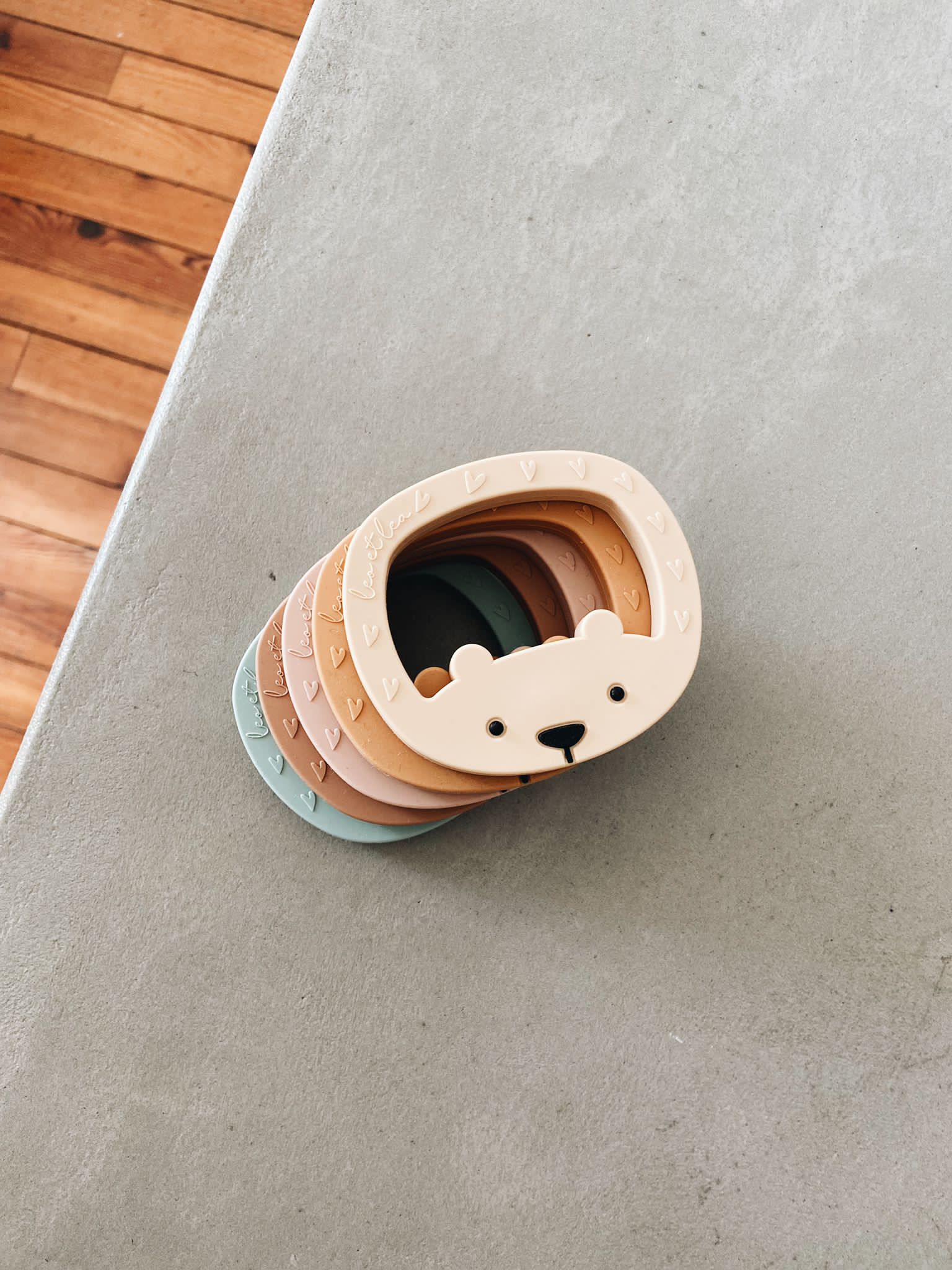 Made of food grade silicone, our Bear Teether offers interesting textures on both sides for endless chewing and exploration. To ensure you don’t leave anywhere without it, use the cutout to attach a clip.