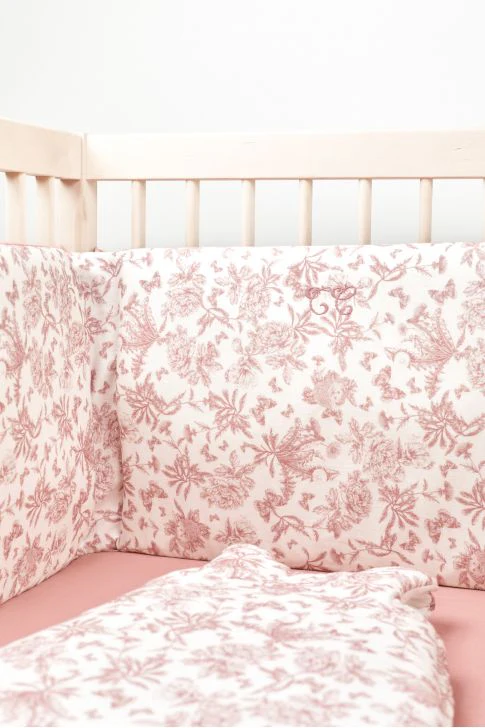 Le tour de lit en coton lange réversible: d’un côté, un joli rose profond et chic et de l’autre un imprimé élégant et coup de coeur. Il vous offre la possibilité de changer régulièrement le style de la chambre de bébé.