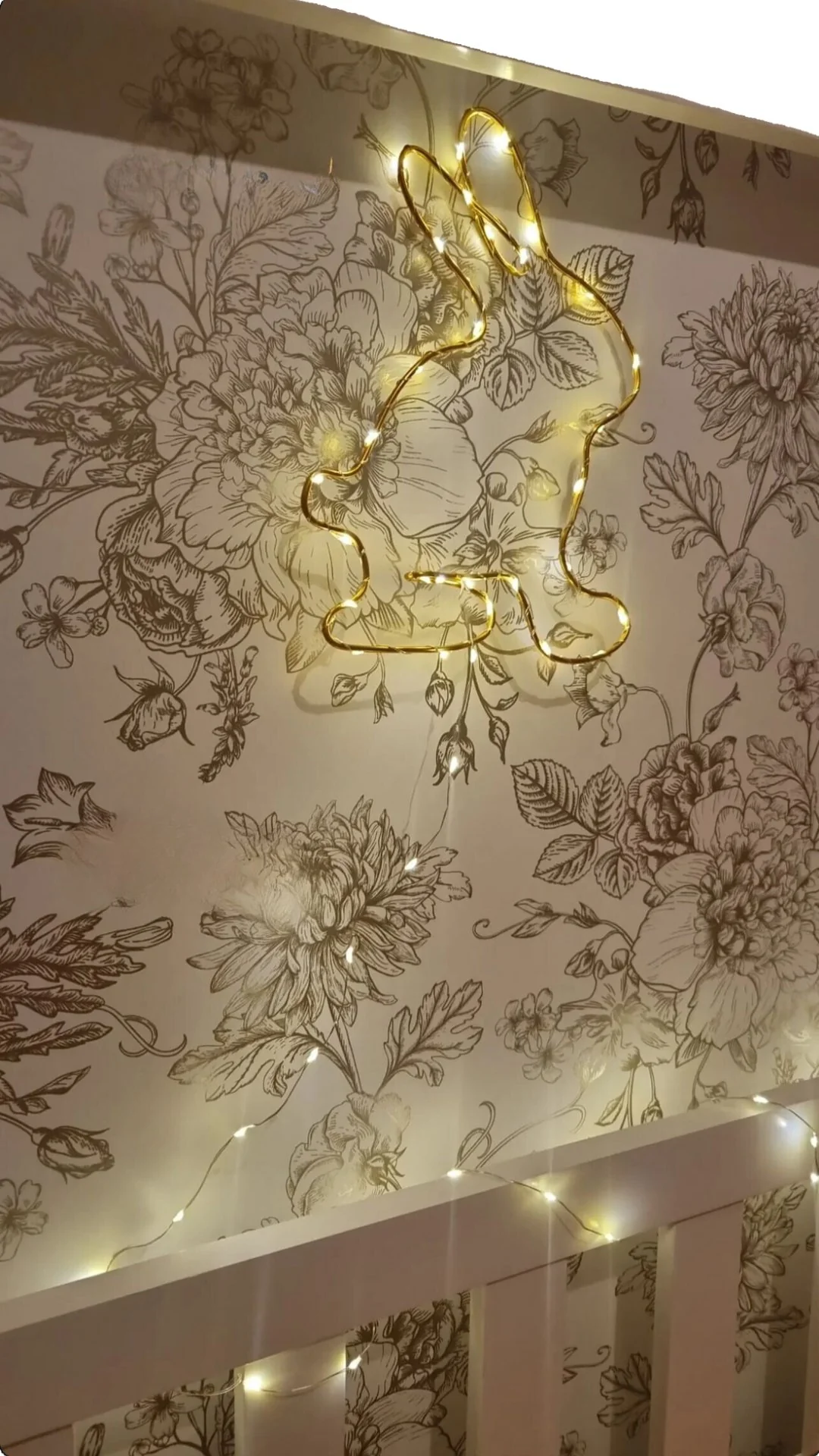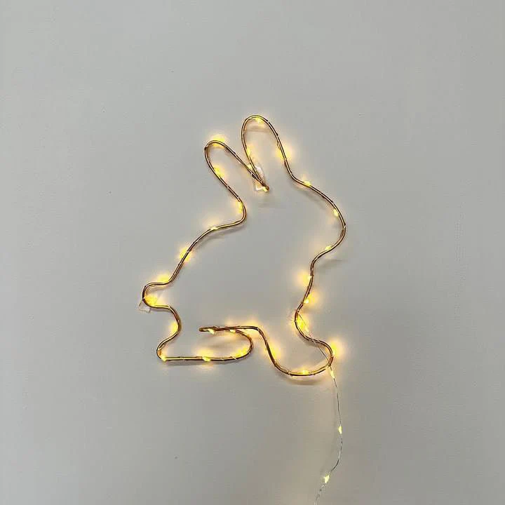 Cette magnifique Lampe lapin dorée avec guirlande lumineuse, ajoutera une touche de poésie dans la chambre de votre bébé ou de votre enfant !