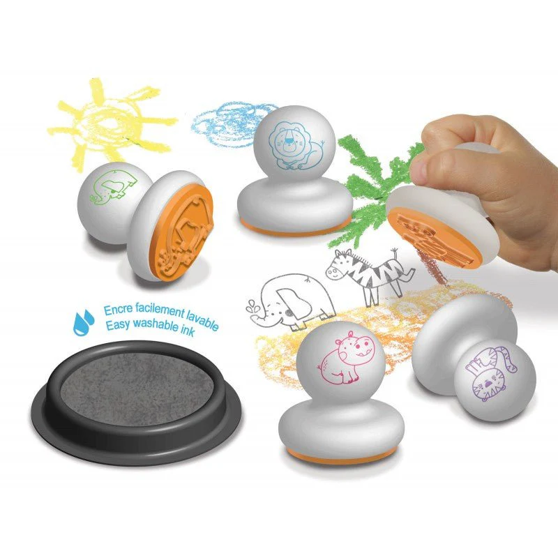 Grâce à sa poignée ronde, chaque tampon est facile à manipuler, permettant aux enfants de s’amuser tout en améliorant leur motricité fine.